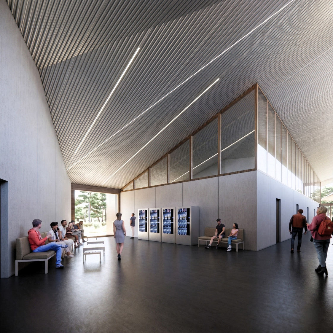 The FREMM 4.0 project in Cartagena was conceived to meet the demand for vocational training through sustainable architecture that optimizes teaching flows and operational efficiency. Aesthetically, the building maintains a neutral palette of concrete and steel, broken only by a blue cornice line that culminates in an illuminated logo, acting as a visual landmark within the industrial park. The entire design aligns with LEED certification, pursuing a holistic vision that integrates energy savings, recycling, and maximum user comfort.
